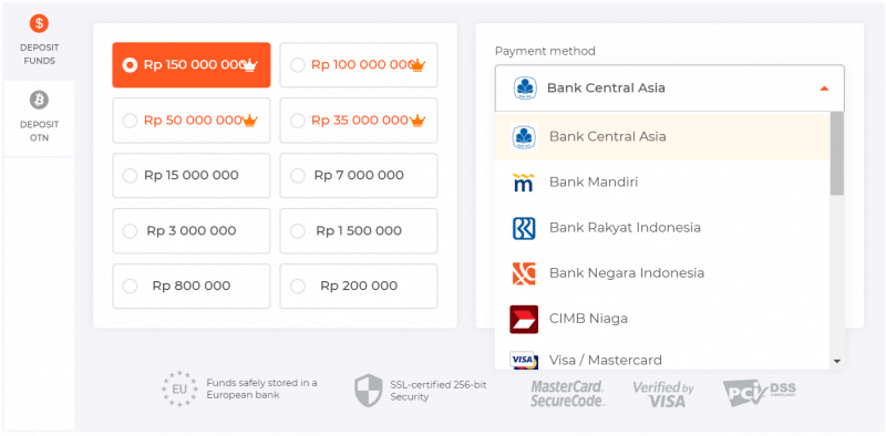 Choose a necessary amount (you could use the proposed amounts or enter your own), currency and a preferred local bank. Please note that you’ll be offered only those banks relevant for your country. Here is a full list of banks available for payment on January 2019: